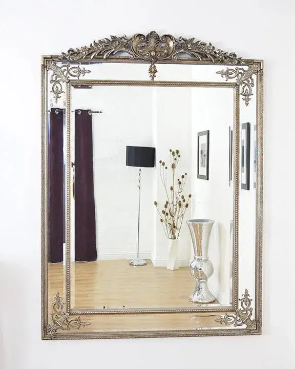 Серебряное зеркало в полный рост "Дилан" - это изысканный декор, который станет неотъемлемой частью интерьера вашего дома. Это широкое зеркало в полный рост в серебристом цвете обладает роскошным дизайном, который непременно привлечет восхищенные взгляды гостей. Центральный элемент зеркала - богато украшенная гребенчатая корона, которая придает ему изысканный и роскошный вид. Каждый угол зеркала украшен красивыми завитками, что добавляет ему элегантности и изыска. Эти детали делают зеркало "Дилан" уникальным и привлекательным. В общей сложности зеркало имеет пять прямоугольных зеркальных областей вокруг центрального отражающего полотна, каждая из которых обрамлена фацетной кромкой. Это увеличивает эффект отражения света и создает игру света и тени, добавляя глубину и объем помещению, в котором находится зеркало. Серебряное зеркало в полный рост "Дилан" не только отлично выполняет свою функцию, позволяя вам рассматривать себя в полный рост, но и становится изысканным украшением для вашего интерьера. Его дизайн идеально подходит для современных, французских и традиционных стилей декора, подчеркивая роскошь и шарм помещения. Это зеркало будет прекрасным дополнением к спальне, гостиной, прихожей или даже ванной комнате, придавая помещению особую изысканность и стиль.