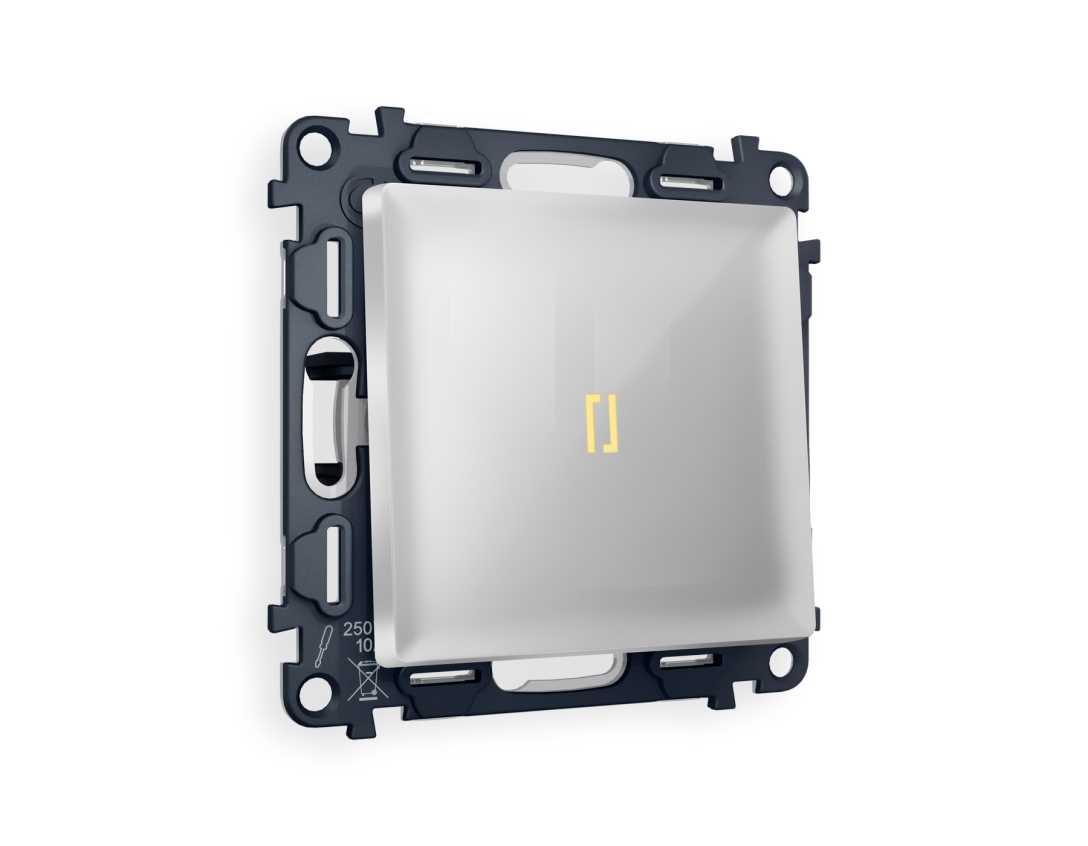 Комплект механизма 1-кл выключателя AMBRELLA VOLT с подсветкой 3200K ALFA Серебро глянец QUANT (AP4020, VM101, G11Y) MA402010