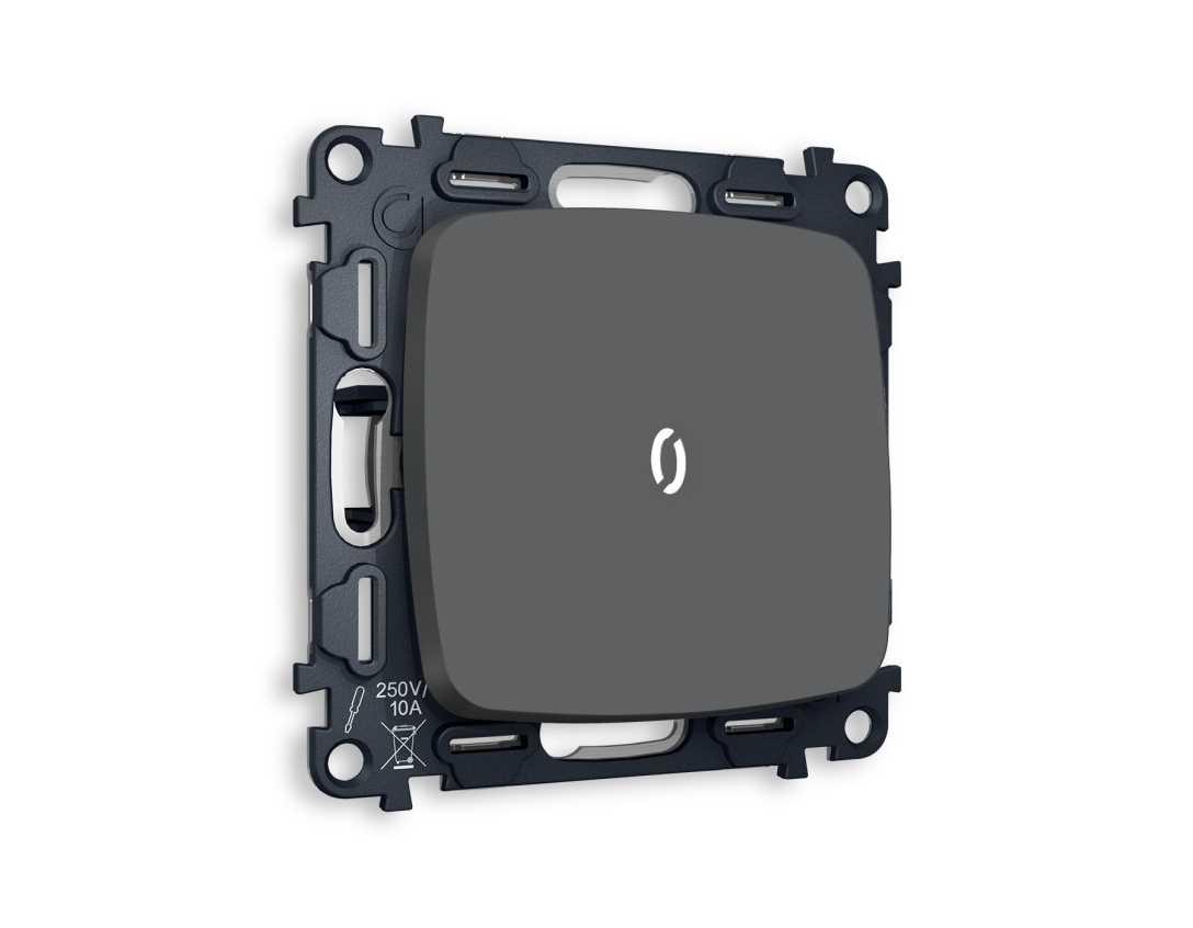 Комплект механизма 1-кл выключателя AMBRELLA VOLT с подсветкой 5600K OMEGA Графит мягкое касание QUANT (OP9020, VM101, G14W) MO902015