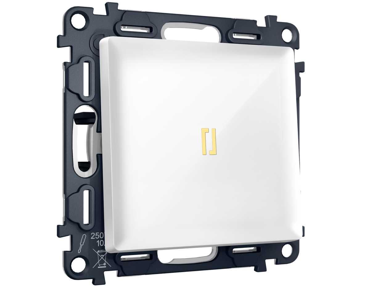 Комплект механизма 1-клавишного выключателя с самовозвратом с подсветкой 3200K Ambrella Volt ALFA Белый глянец QUANT (AP1020, VM113, G11Y) MA102050