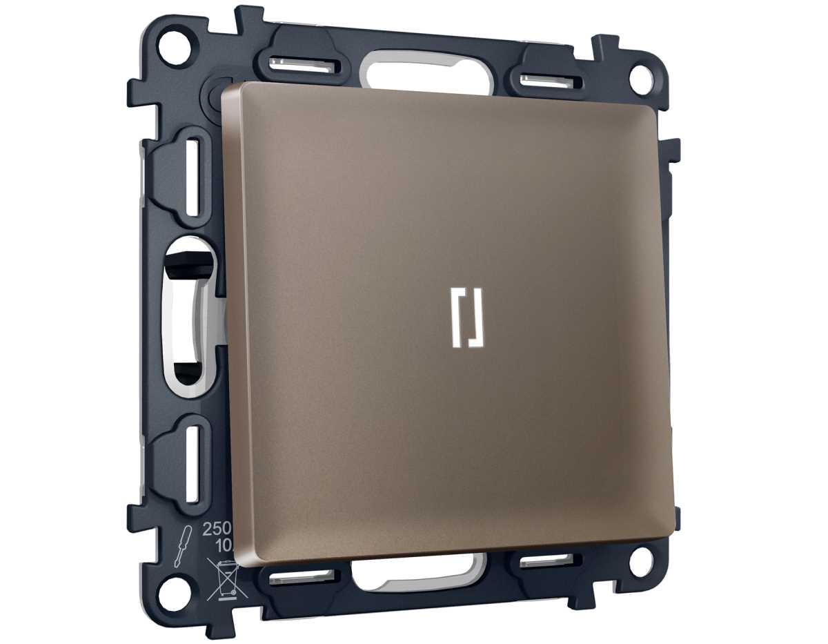 Комплект механизма 1-клавишного выключателя с самовозвратом с подсветкой 5600K ALFA Темная бронза матовый QUANT (AP6320, VM113, G14W) MA632055