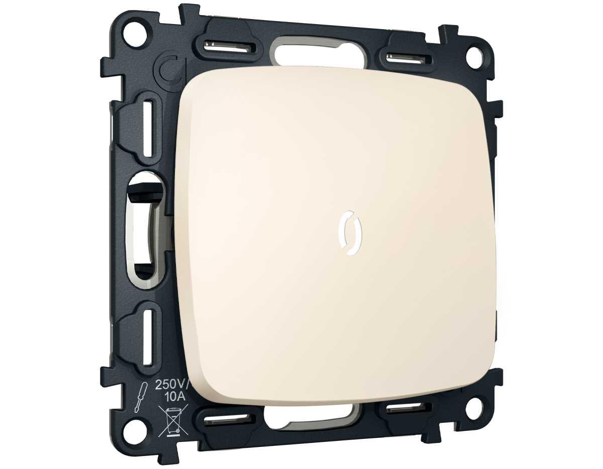 Комплект механизма 1-клавишного выключателя с самовозвратом с подсветкой 5600K Ambrella Volt OMEGA Бежевый матовый QUANT (OP3220, VM113,G14W) MO322055