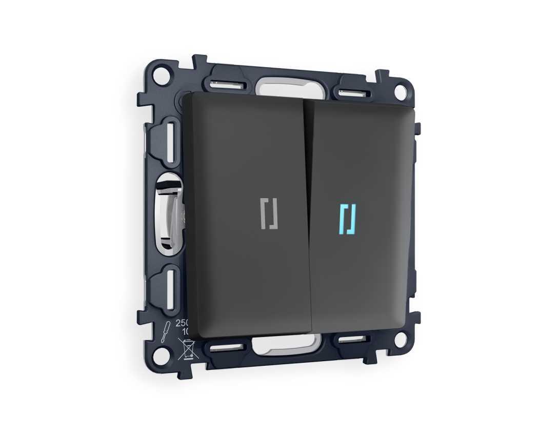 Комплект механизма 2-кл проходного выключателя AMBRELLA VOLT с подсветкой 10000K ALFA Графит мягкое касание QUANT (AP9040, VM120, G29B) MA904040