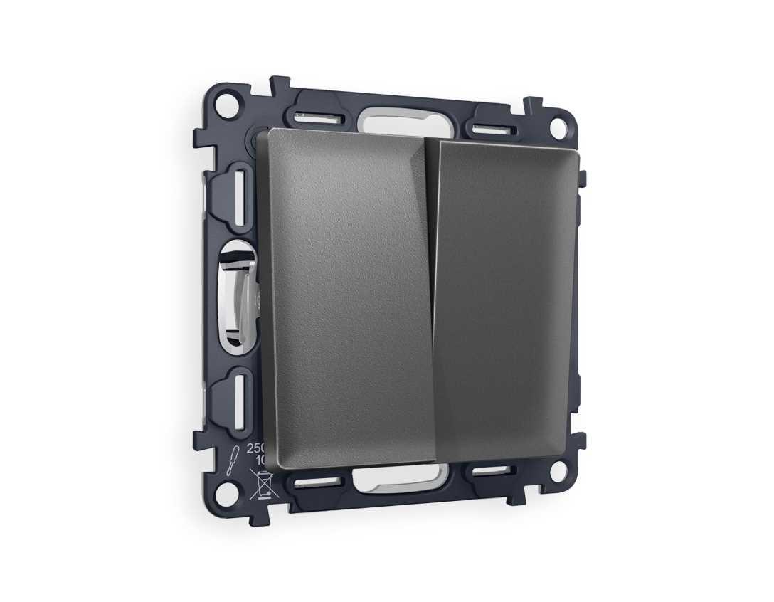 Комплект механизма 2-кл выключателя AMBRELLA VOLT ALFA Антрацит серый QUANT (AP6530, VM115) MA653010