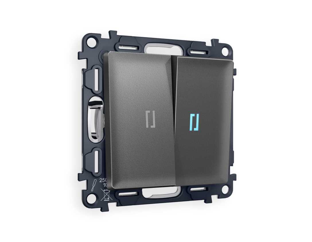 Комплект механизма 2-кл выключателя AMBRELLA VOLT с подсветкой 10000K ALFA Антрацит серый QUANT (AP6540, VM115, G17B) MA654020