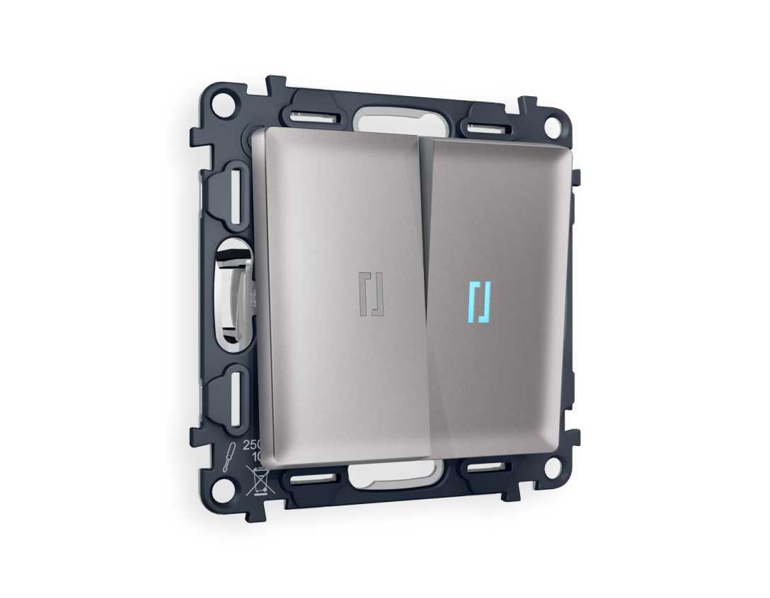 Комплект механизма 2-кл выключателя AMBRELLA VOLT с подсветкой 10000K ALFA Сталь матовый QUANT (AP5040, VM115, G17B) MA504020