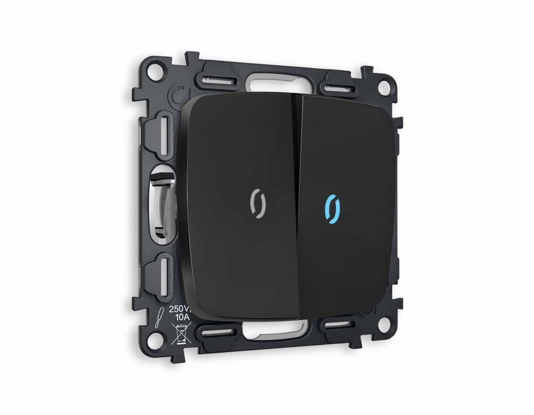 Комплект механизма 2-кл выключателя AMBRELLA VOLT с подсветкой 10000K OMEGA Черный матовый QUANT (OP8040, VM115, G17B) MO804020