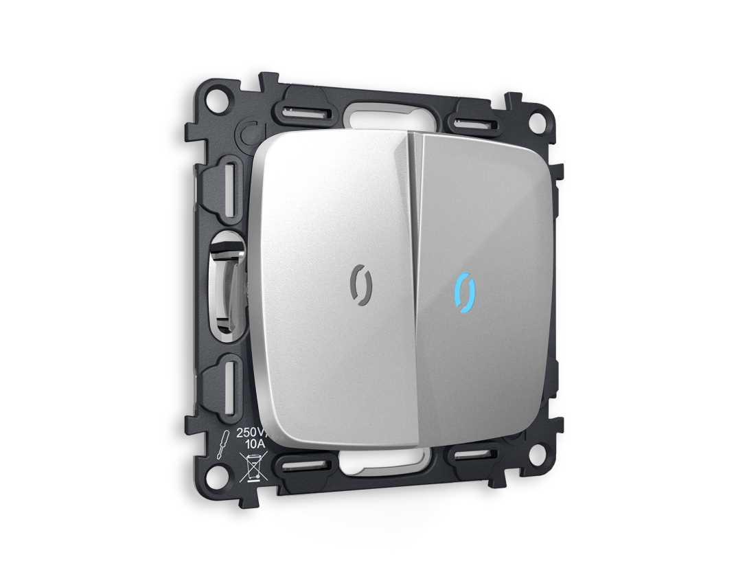 Комплект механизма 2-кл выключателя AMBRELLA VOLT с подсветкой 10000K OMEGA Серебро глянец QUANT (OP4040, VM115, G17B) MO404020