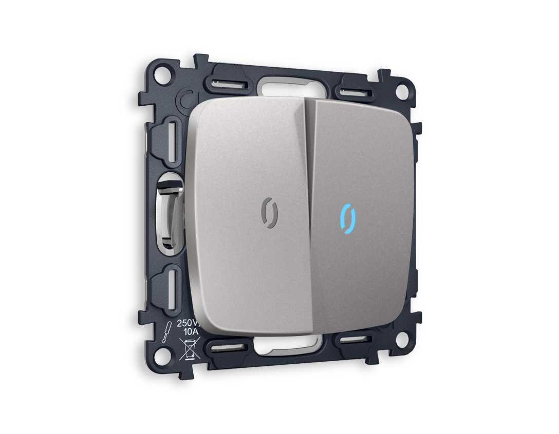 Комплект механизма 2-кл выключателя AMBRELLA VOLT с подсветкой 10000K OMEGA Сталь матовый QUANT (OP5040, VM115, G17B) MO504020