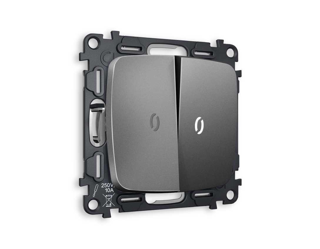 Комплект механизма 2-кл выключателя AMBRELLA VOLT с подсветкой 5600K OMEGA Антрацит серый QUANT (OP6540, VM115, G14W) MO654015