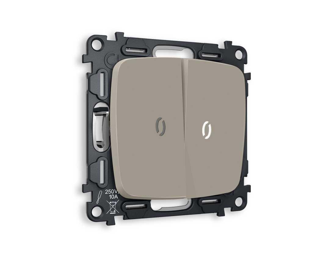 Комплект механизма 2-кл выключателя AMBRELLA VOLT с подсветкой 5600K OMEGA Серо-бежевый матовый QUANT (OP3640, VM115, G14W) MO364015