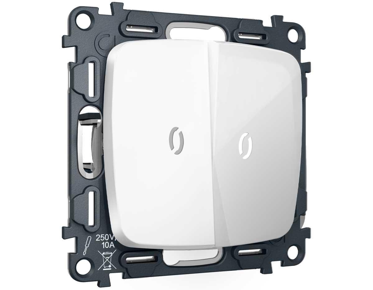Комплект механизма 2-клавишного выключателя с подсветкой 5600K Ambrella Volt OMEGA Белый глянец QUANT (OP1040, VM115, G14W) MO104015