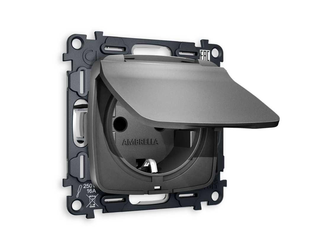 Комплект механизма электрической розетки AMBRELLA VOLT OMEGA Антрацит серый с/з с шторками и крышкой IP44 QUANT (OP6580, VM141) MO658010