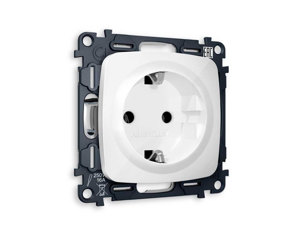 Комплект механизма электрической розетки Ambrella Volt OMEGA Белый глянец с заземлением на винтовых зажимах QUANT (OP1060, VM141) MO106010