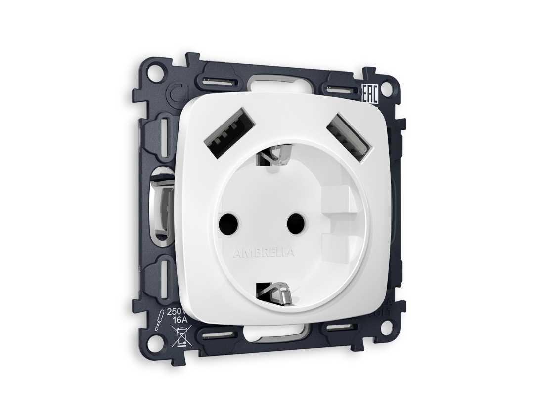 Комплект механизма электрической розетки AMBRELLA VOLT OMEGA Белый матовый 2USB A+A 18W (быстрая зарядка) с/з QUANT (OP1290, VM155) MO129010