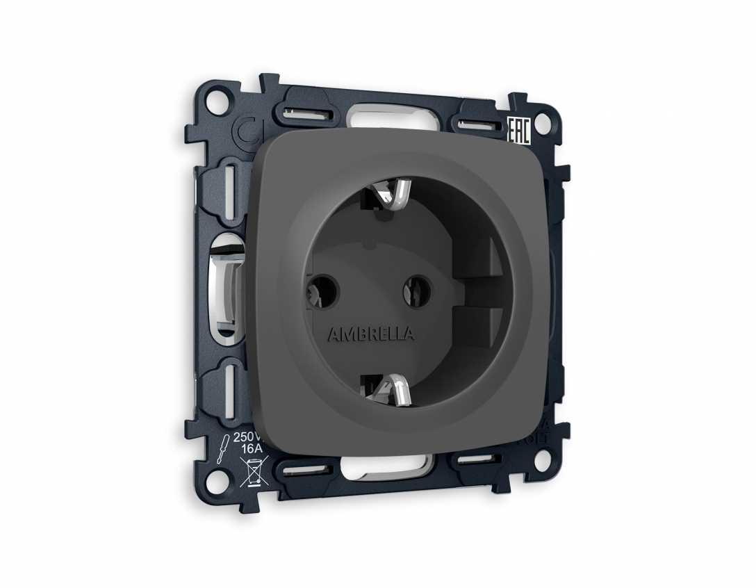 Комплект механизма электрической розетки AMBRELLA VOLT OMEGA Графит мягкое касание с/з на винтовых зажимах QUANT (OP9060, VM141) MO906010