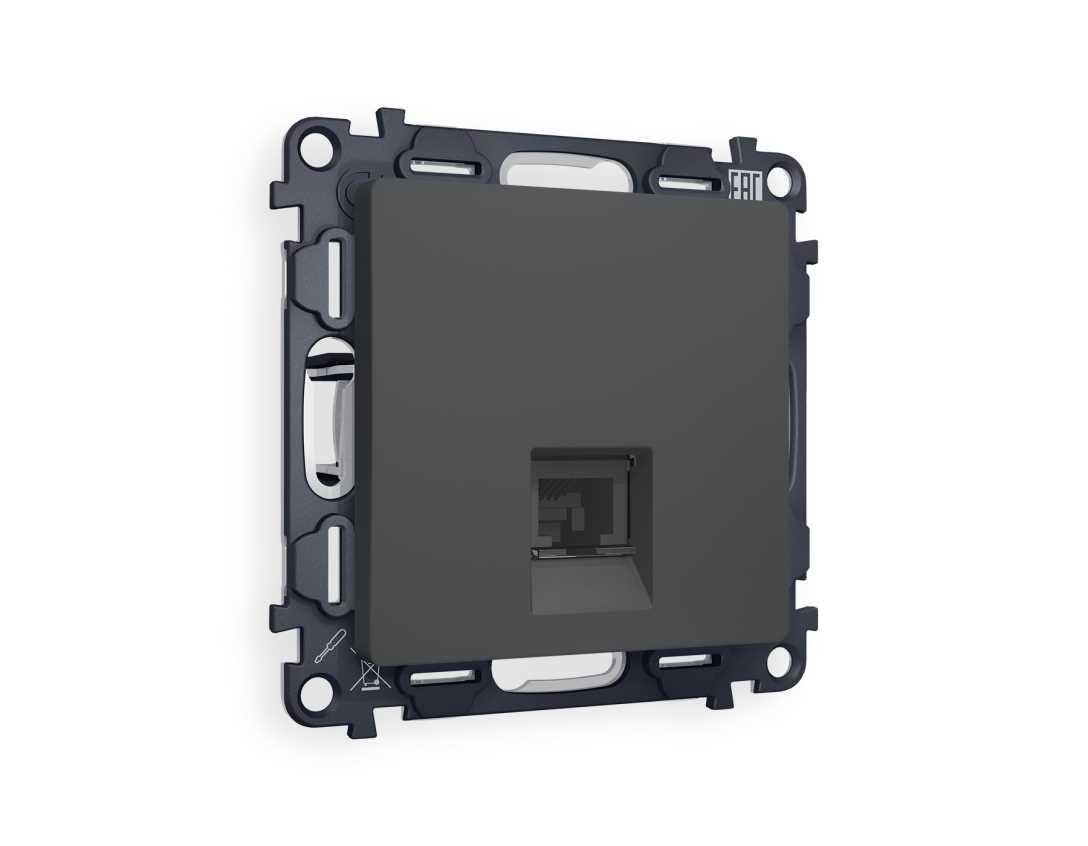 Комплект механизма компьютерной розетки AMBRELLA VOLT ALFA Графит мягкое касание RJ-45(8P8C) CAT6 с шторкой QUANT (AP9120, VM188) MA912010