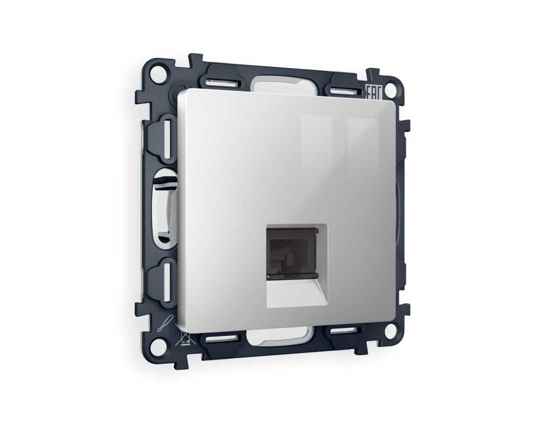 Комплект механизма компьютерной розетки AMBRELLA VOLT ALFA Серебро глянец RJ-45(8P8C) CAT6 с шторкой QUANT (AP4120, VM188) MA412010