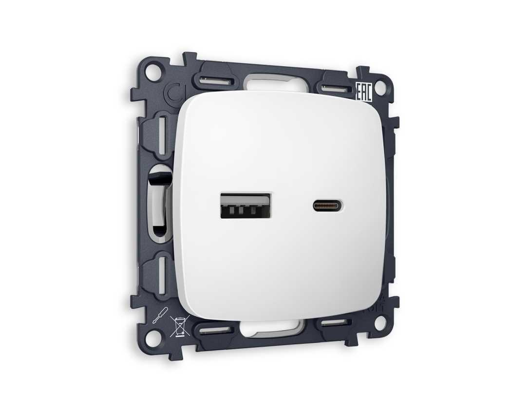 Комплект механизма розетки AMBRELLA VOLT OMEGA Белый матовый 2USB A+C 20W (быстрая зарядка) QUANT (OP1310, VM177) MO131010