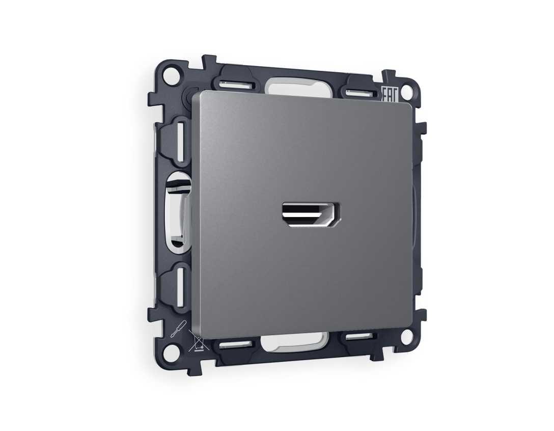 Комплект механизма розетки HDMI 2.0 AMBRELLA VOLT ALFA Антрацит серый 40V/500mA 2.0GHz 5-18Gbit/s QUANT (AP6640, VM222) MA664010