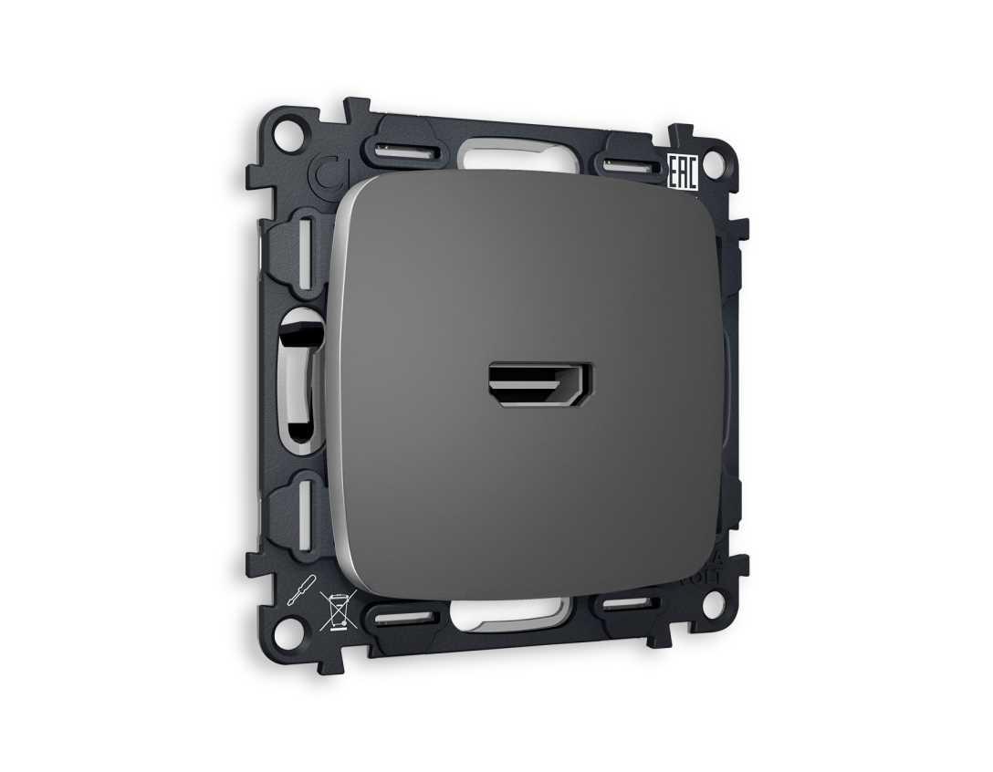 Комплект механизма розетки HDMI 2.0 AMBRELLA VOLT OMEGA Антрацит серый 40V/500mA 2.0GHz 5-18Gbit/s QUANT (OP6640, VM222) MO664010