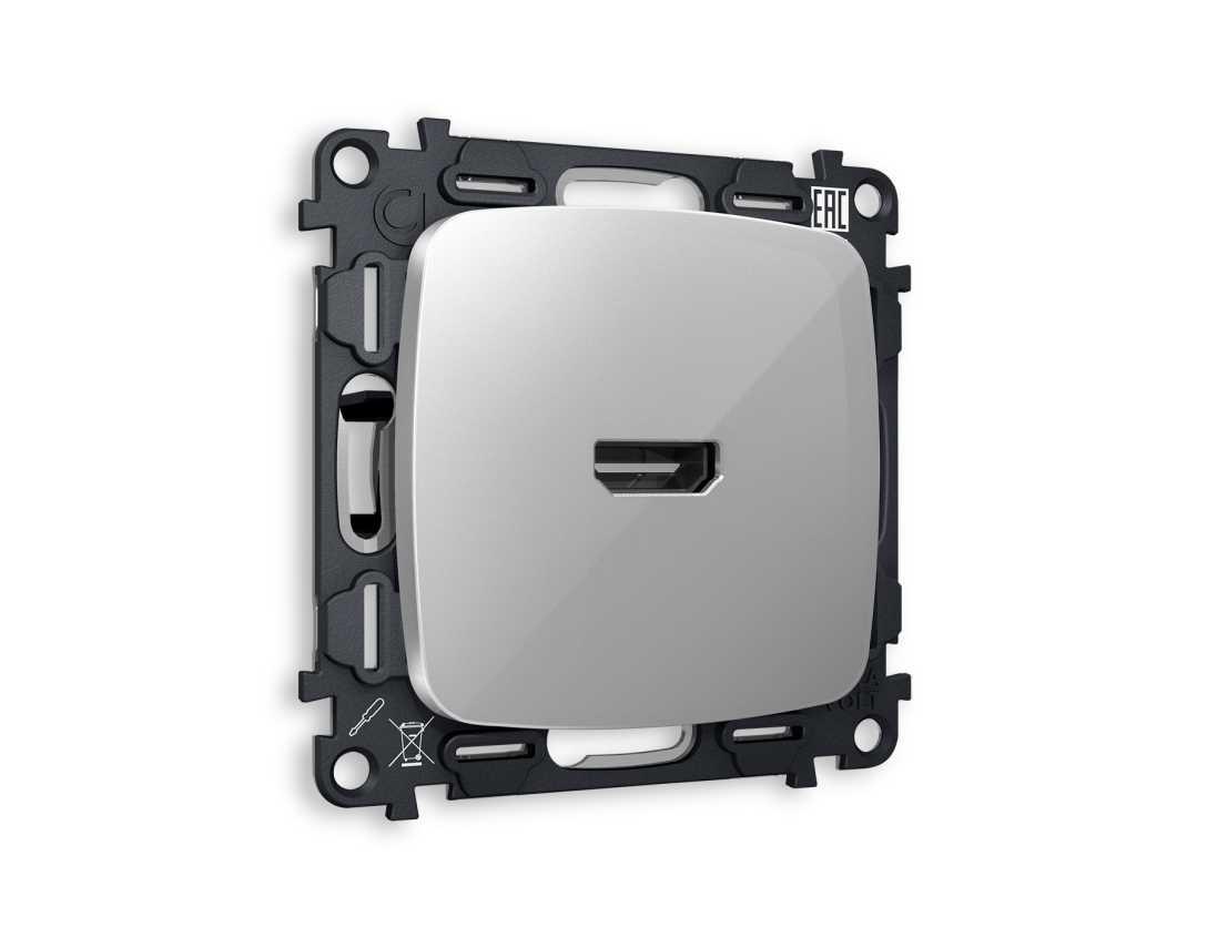 Комплект механизма розетки HDMI 2.0 AMBRELLA VOLT OMEGA Серебро глянец 40V/500mA 2.0GHz 5-18Gbit/s QUANT (OP4140, VM222) MO414010