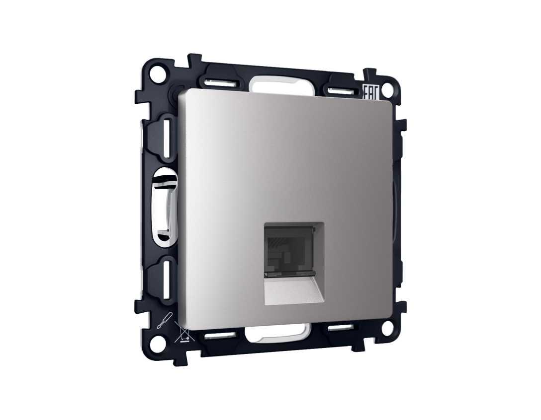 Комплект механизма телефонной розетки AMBRELLA VOLT ALFA Сталь матовый RJ-11(4P4C) с шторкой QUANT (AP5120, VM190) MA512030