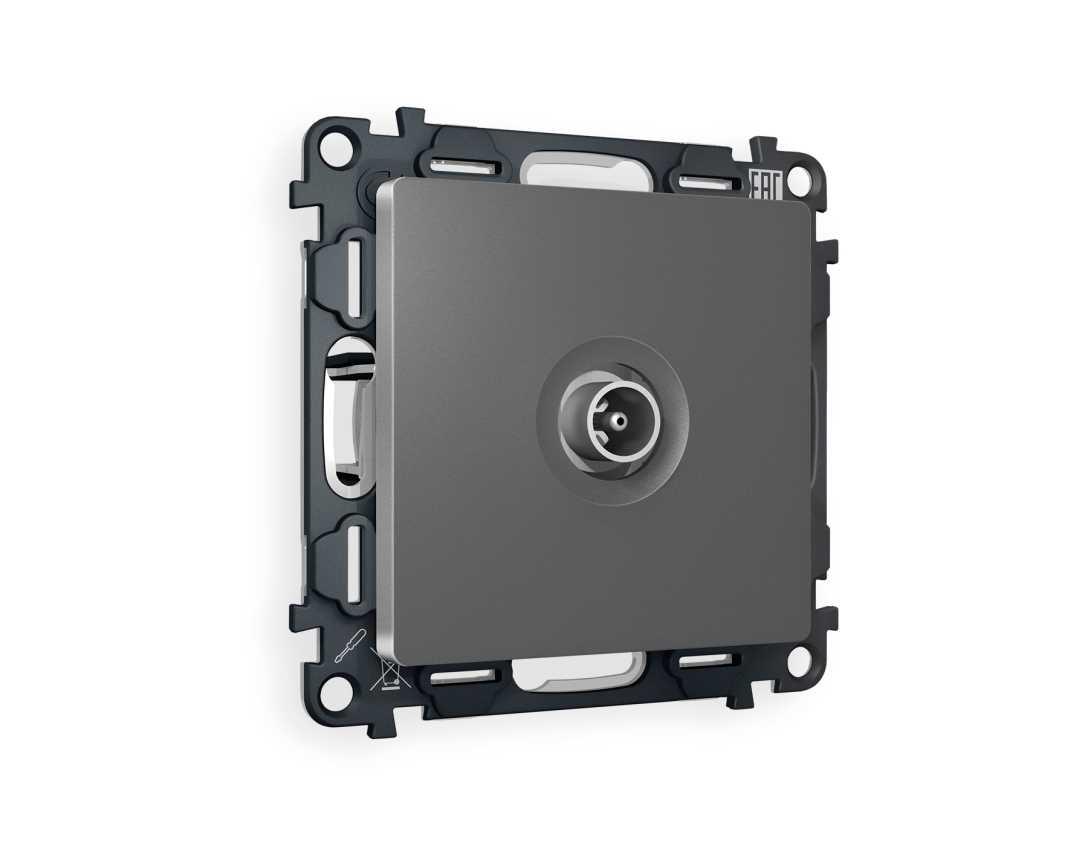 Комплект механизма TV розетки проходной AMBRELLA VOLT ALFA Антрацит серый 5-1000 MHz 4dB QUANT (AP6630, VM211) MA663030