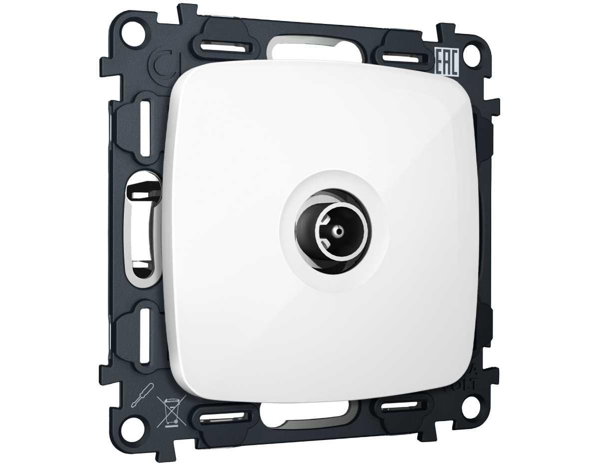 Комплект механизма TV розетки проходной Ambrella Volt OMEGA Белый глянец 5-1000 MHz 4dB QUANT (OP1130, VM211) MO113030