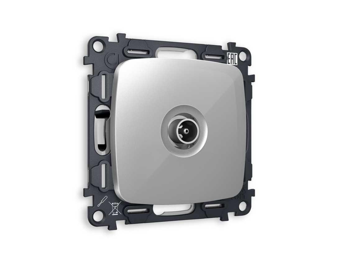 Комплект механизма TV розетки проходной AMBRELLA VOLT OMEGA Серебро глянец 5-1000 MHz 4dB QUANT (OP4130, VM211) MO413030
