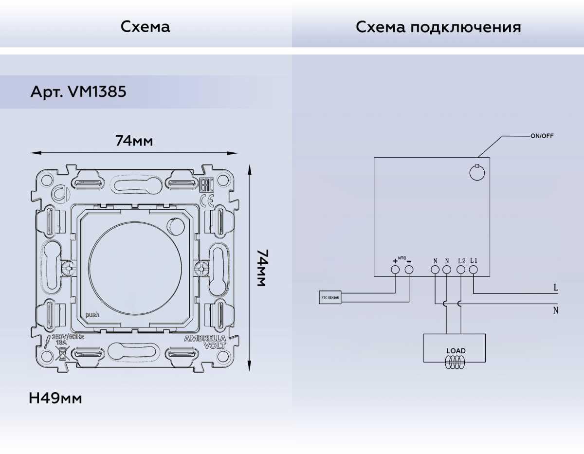 Механизм терморегулятора с цифровым дисплеем с датчиком для теплого пола с подсветкой 16A-250V QUANT (EXTRA CONTROL) VM1385