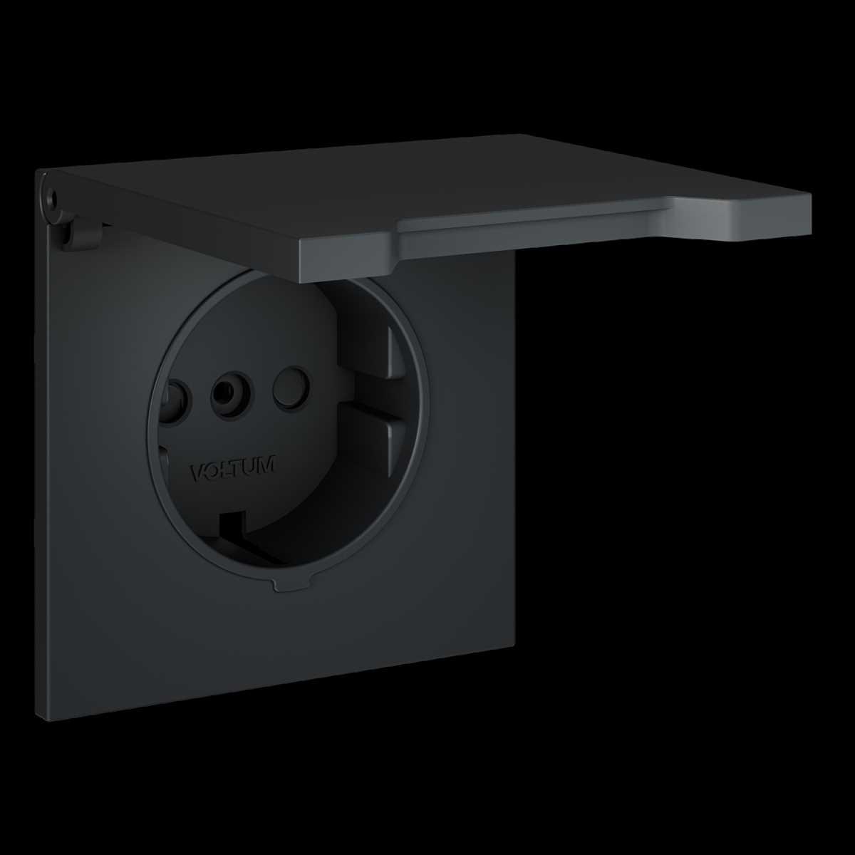 Накладка для розетки с заземлением защитными шторками и крышкой S70 (графит) Voltum VLS000807