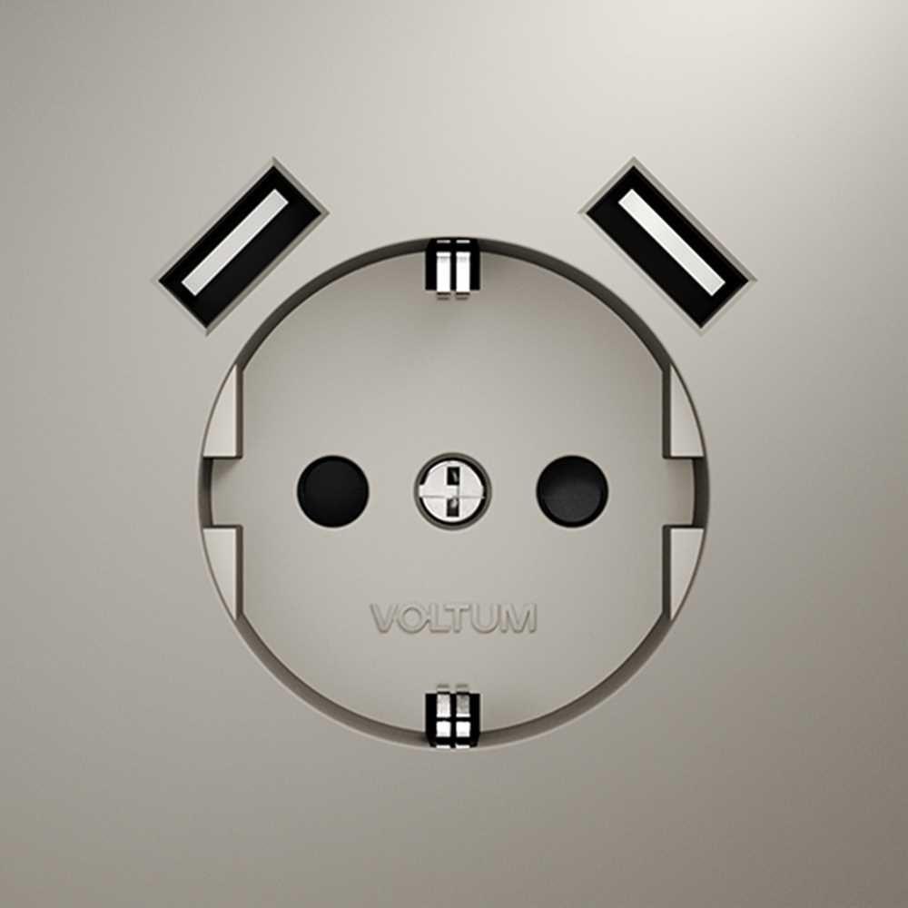 Розетка встраиваемая Voltum S70 с заземлением и защитными шторками, 16А, с USB, A+A, (кашемир) VLS040403