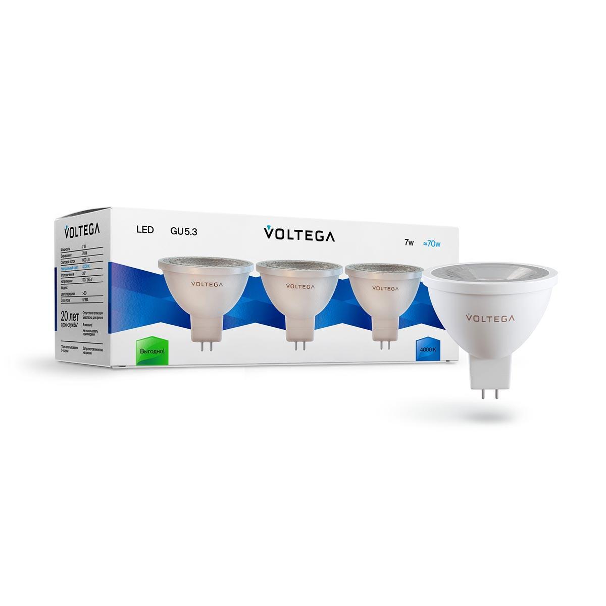Набор светодиодных ламп Voltega GU5.3 7W 4000К прозрачная 7179