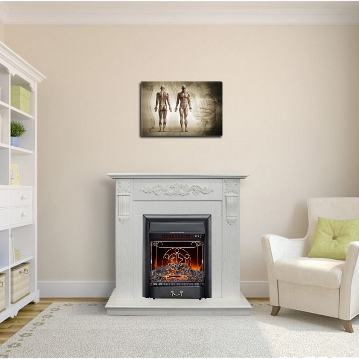 Электрокамин RealFlame Dominica DN белый матовый с очагом Majestic Lux Black