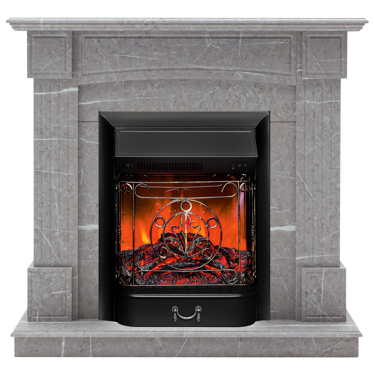 Каминокомплект ANDREA/АЛЬФА Мрамор серый с очагом Электроочаг MAJESTIC LUX/МАДЖЕСТИК