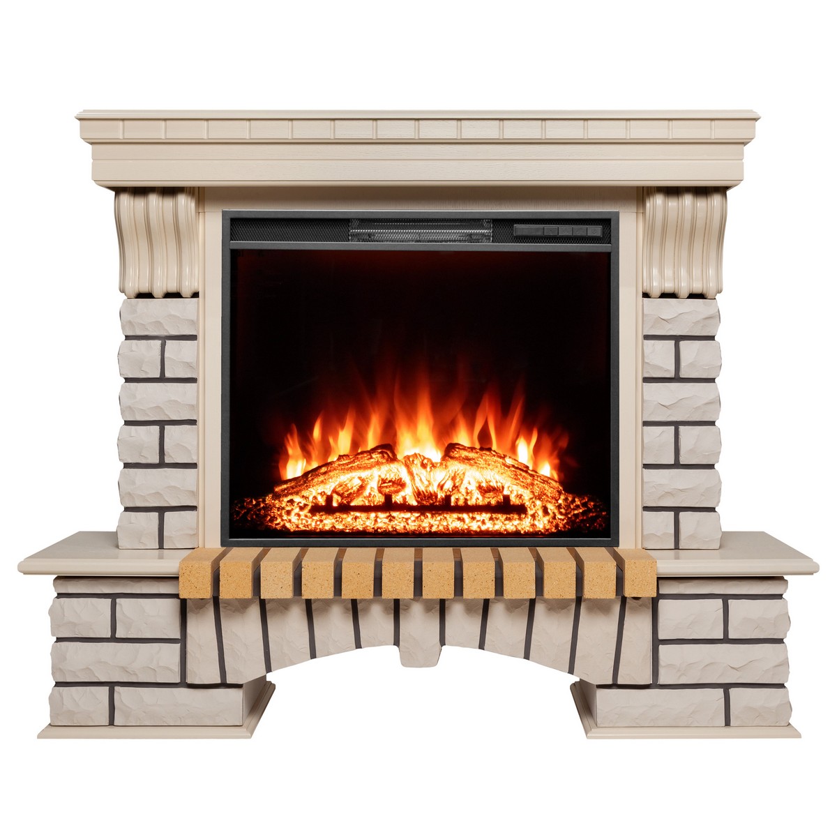 Каминокомплект COUNTRY/БРУКЛИН Бежевый дуб с очагом Электроочаг AQUAMARINE/АКВАМАРИН 26