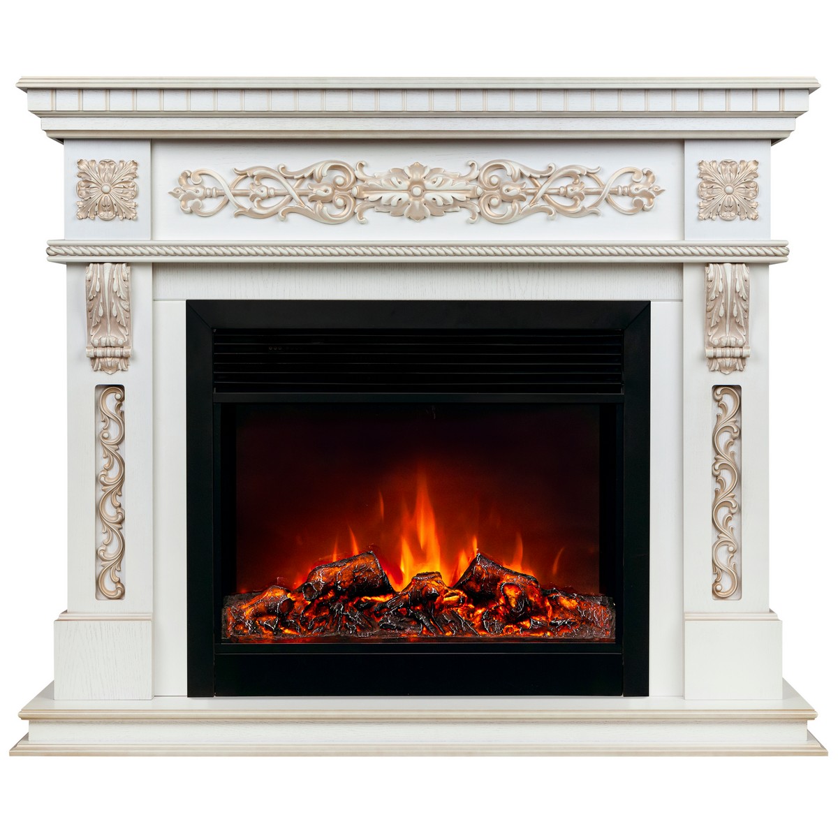 Каминокомплект ESTELLA/ЭЛЛИ Белый дуб с золотой патиной с очагом Электроочаг MOONBLAZE LUX/МУНБЛЕЙЗ