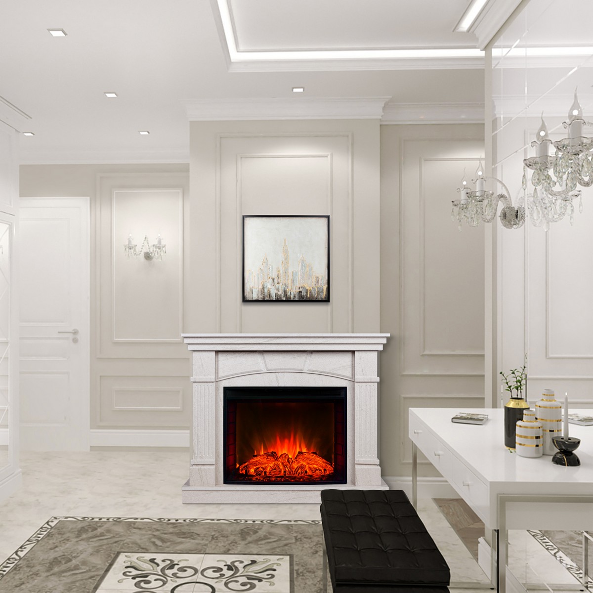 Каминокомплект HISTORY/СИДНЕЙ Натуральный камень с очагом Электроочаг EVRIKA 25.5