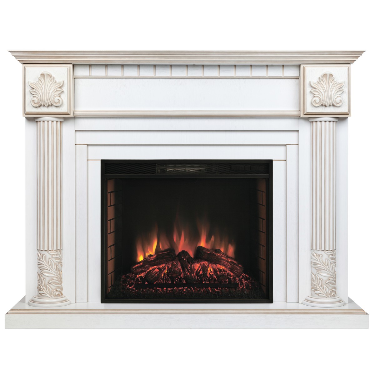 Каминокомплект IMPERIA/ПРЕСТИЖ Белый дуб с золотой патиной с очагом Электроочаг EPSILON 26