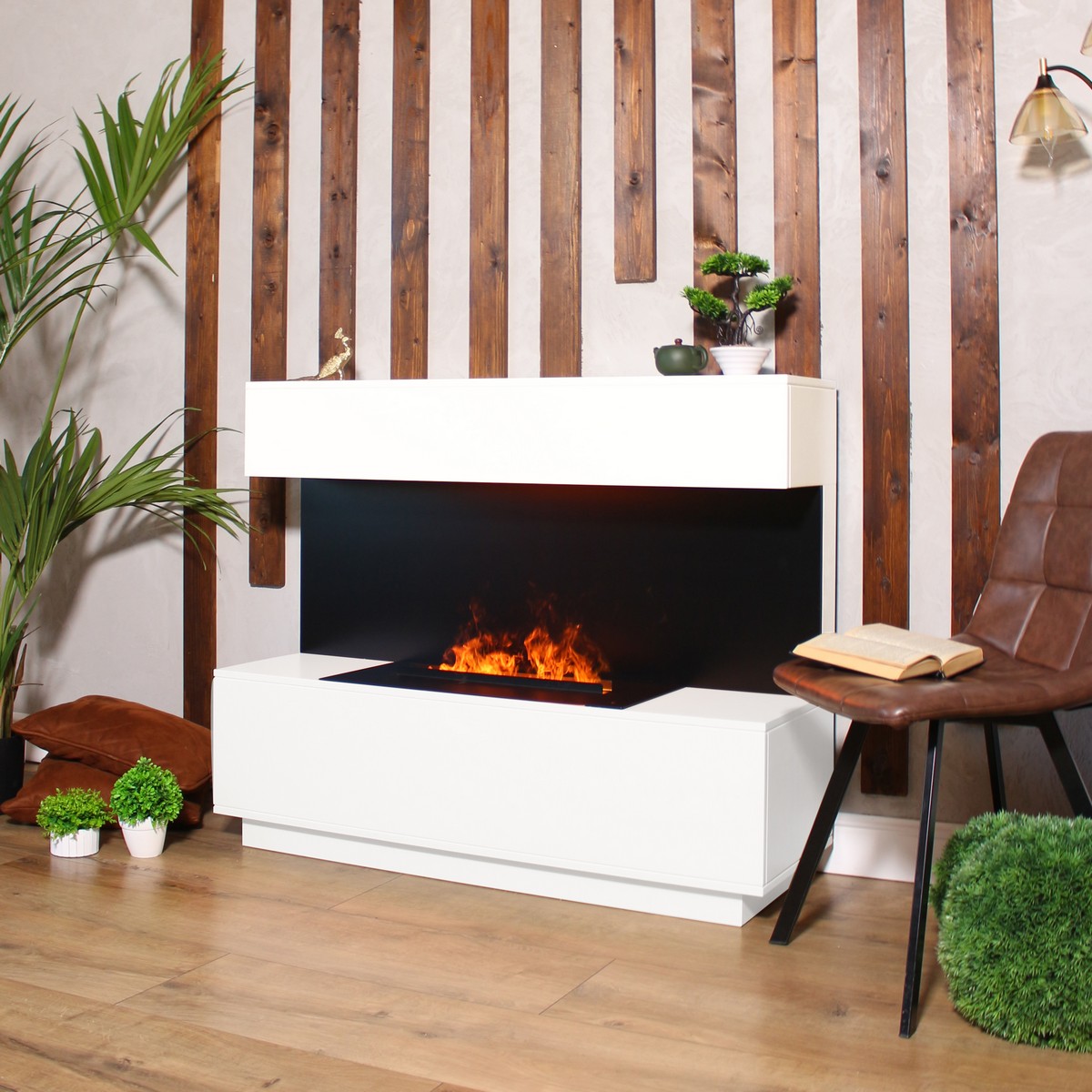 Каминокомплект MODERN/МОДЕРН Белый матовый с очагом Электроочаг CASSETTE/КАССЕТА 630