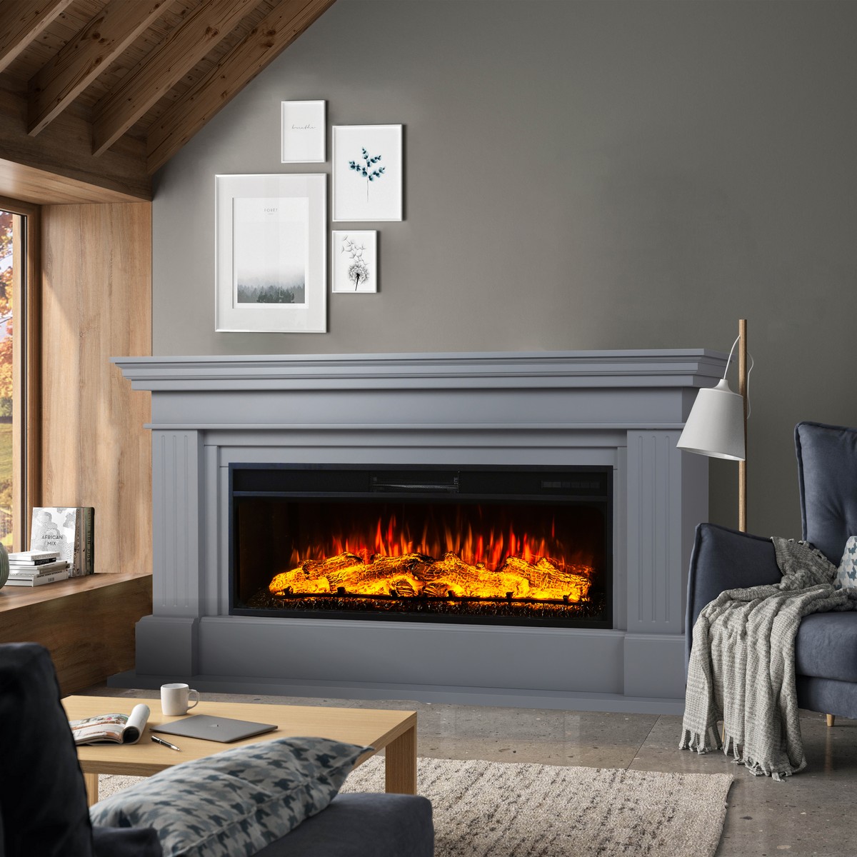 Каминокомплект ONTARIO/ЛЕОНАРДО Шиншилла с очагом Электроочаг JOKER/ДЖОКЕР 45