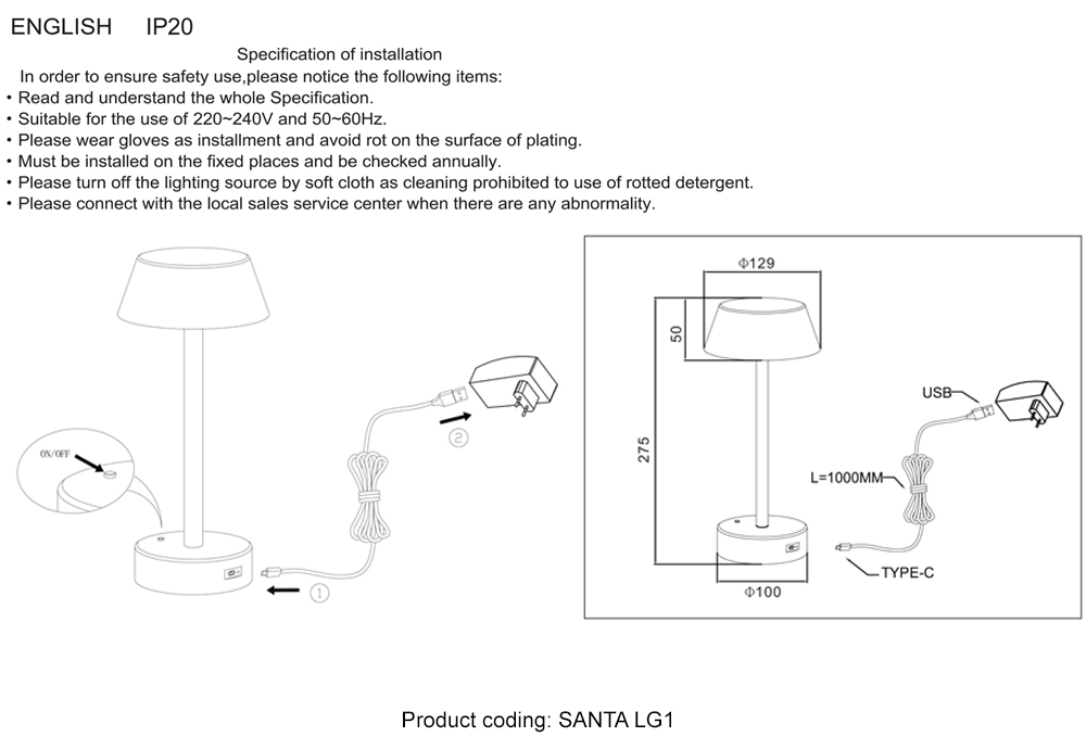 Аккумуляторная настольная лампа Crystal Lux SANTA LG1 WHITE