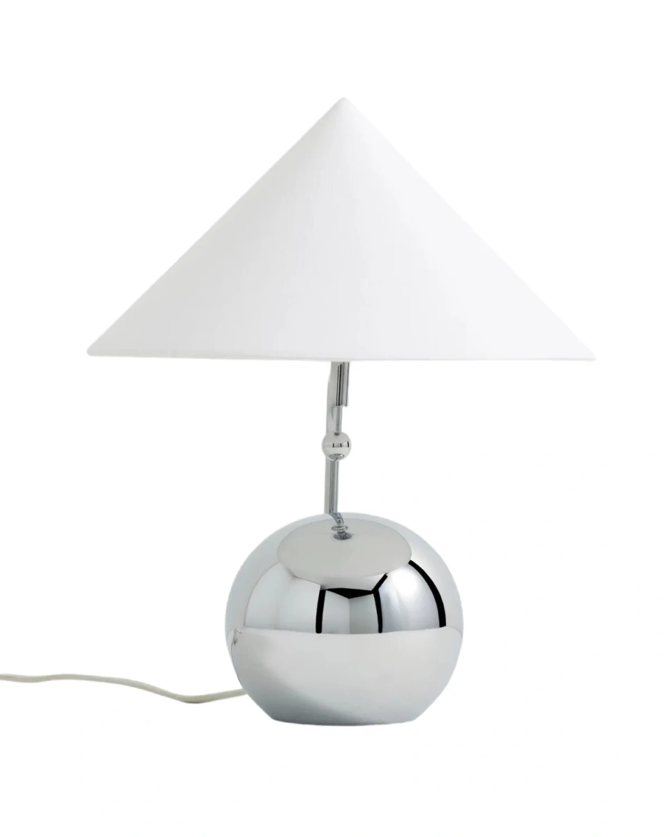 Серебристая лампа "Шанталь" с белым конусным абажуром - это изящный акцент для спальни, гостиной или рабочего уголка. Конусный плафон белого цвета рассеивает свет и создаёт уютную атмосферу. Зеркальное основание из хромированного металла добавляет современного блеска и визуально облегчает форму. Лаконичный силуэт легко впишется в классические и современные интерьеры, от сканди до mid-century. Идеальна для прикроватной тумбы, консоли или письменного стола — для мягкой вечерней подсветки и комфортного чтения.