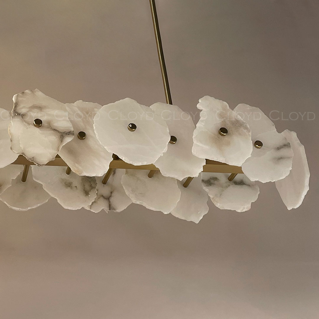 Люстра подвесная Cloyd KNOSS (Клойд Кносс) C1 / арт.10755, ширина: 120 см. высота: 22 см (подвес в комплекте - до 150 см) глубина: 28 см, источник света: LED 100 Вт, цвет металла - латунь. Поскольку цветность и фактура алебастра, используемого в этой коллекции, являются природными характеристиками, размеры и рисунок этих элементов могут отличаться. Особенности: алебастр или Облачный Камень - минерал с повышенной светопроницаемостью.Гарантия: 1 год.