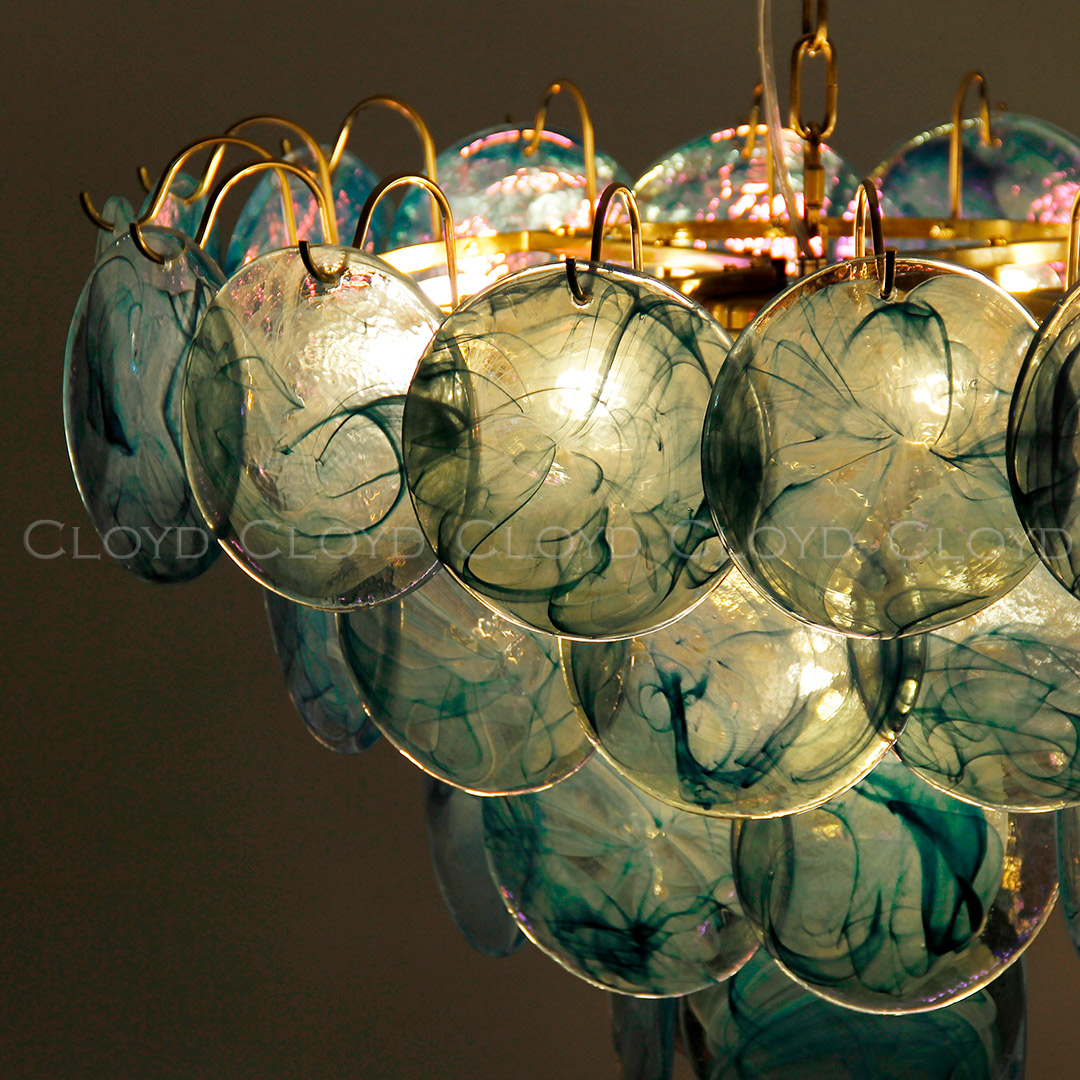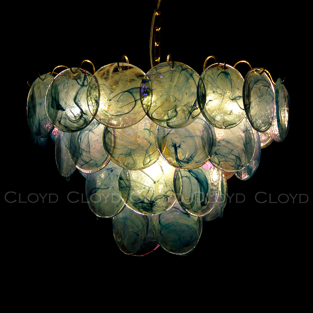 Люстра Cloyd LINZE-B C13 / Ø60 см - латунь - голубое стекло (арт.11675)