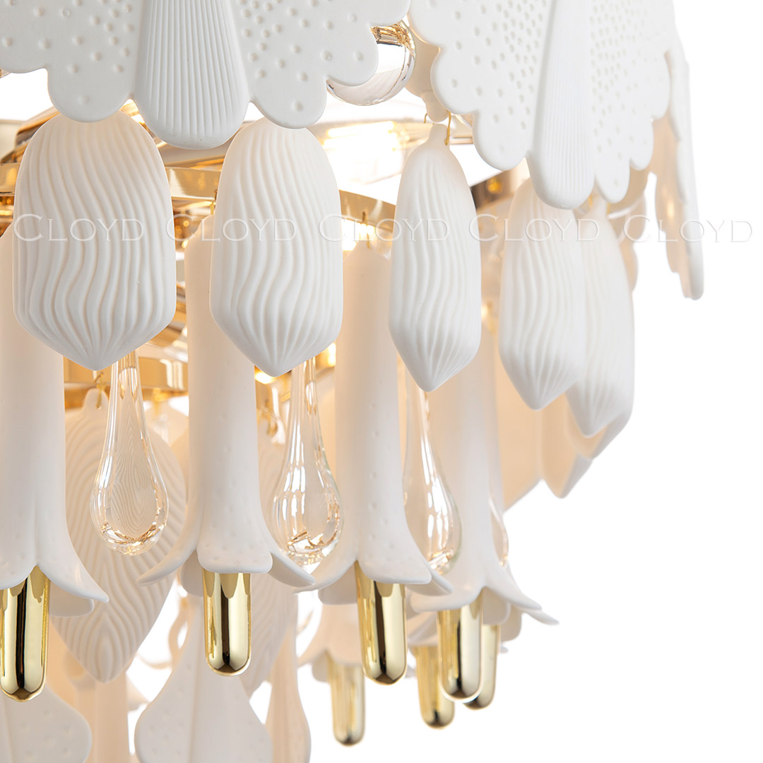 Люстра подвесная Cloyd PLINSE (Клойд Плинс) C12 / арт.11456, ø: 61 см. высота: 44 см (подвес в комплекте - до 50 см), источник света: E14 х 12 шт, цвет металла - золото блестящее. Особенности: керамика высокого качества.Гарантия: 1 год.