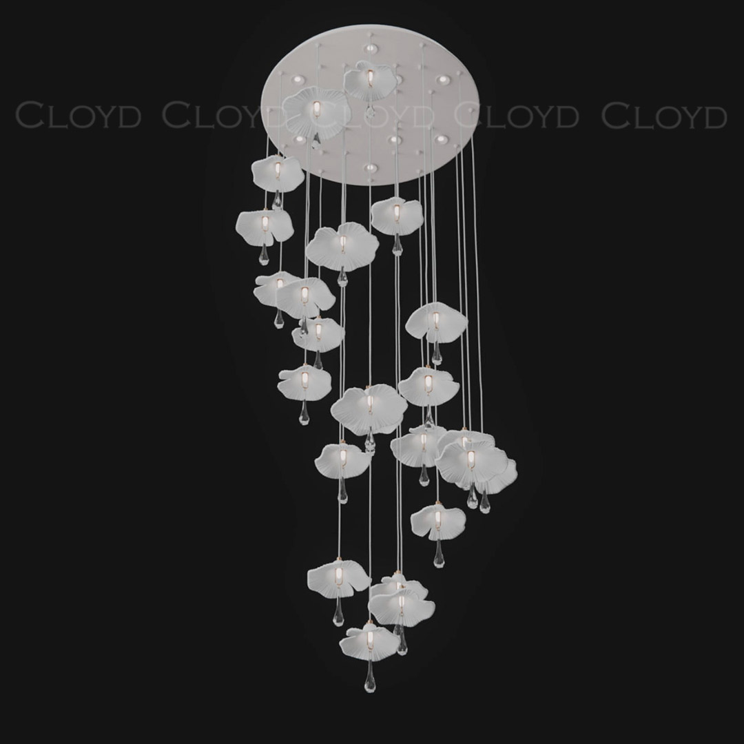 Люстра подвесная Cloyd SHANGRILA (Клойд Шангрила) C33 / арт.11490, ø: 80 см. высота: 250 см, источник света: GU10 х 9 шт + G4 x 24 шт, цвет металла - белый (окраска). Особенности: керамика высокого качества.Гарантия: 1 год.
