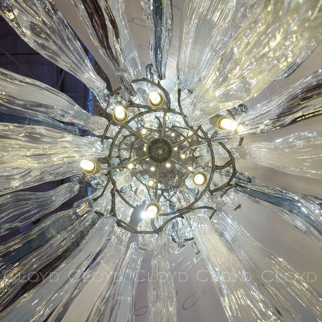 Люстра подвесная Cloyd SULAWESI (Клойд Сулавеси) C24 / арт.11255, ø: 52 см. высота: 260 см, источник света: G9 х 24 шт, цвет металла - серебро темное. Особенности: выдувное (муранское) стекло.Гарантия: 1 год.