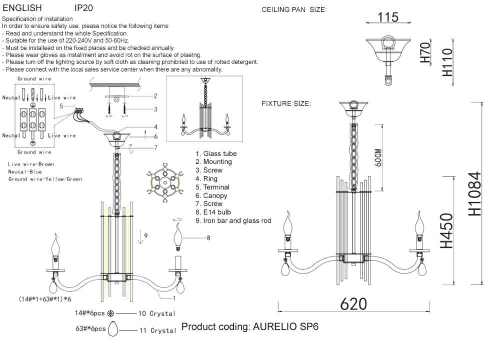 Люстра Crystal Lux AURELIO SP6 GOLD+CHROME/TRANSPARENT
